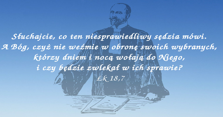 Jezus opowiedział swoim uczniom przypowieść o tym, że zawsze powinni się modlić i nie ustawać: „W pewnym mieście żył sędzia, który Boga się nie bał i nie liczył się z ludźmi. W tym samym mieście żyła wdowa, która przychodziła do niego z prośbą: „Obroń mnie przed moim przeciwnikiem”. Przez pewien czas nie chciał; lecz potem rzekł do siebie: „Chociaż Boga się nie boję ani się z ludźmi nie liczę, to jednak ponieważ naprzykrza mi się ta wdowa, wezmę ją w obronę, żeby nie przychodziła bez końca i nie zadręczała mnie”. I Pan dodał: „Słuchajcie, co ten niesprawiedliwy sędzia mówi. A Bóg, czyż nie weźmie w obronę swoich wybranych, którzy dniem i nocą wołają do Niego, i czy będzie zwlekał w ich sprawie? Powiadam wam, że prędko weźmie ich w obronę. Czy jednak Syn Człowieczy znajdzie wiarę na ziemi, gdy przyjdzie?”.